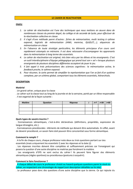 Les fiches ou encarts de mémorisation : un outil basé sur la mémorisation active pour apprendre et réviser efficacement (basés sur les neurosciences cognitives)
